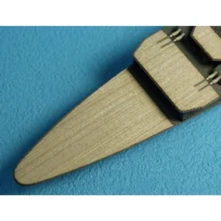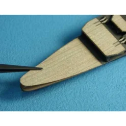 Comprend une feuille de bois véritable avec adhésif pour réaliser les ponts du bateau,des pièces en photodécoupe et des filets blancs pour réaliser les lignes de ponts.