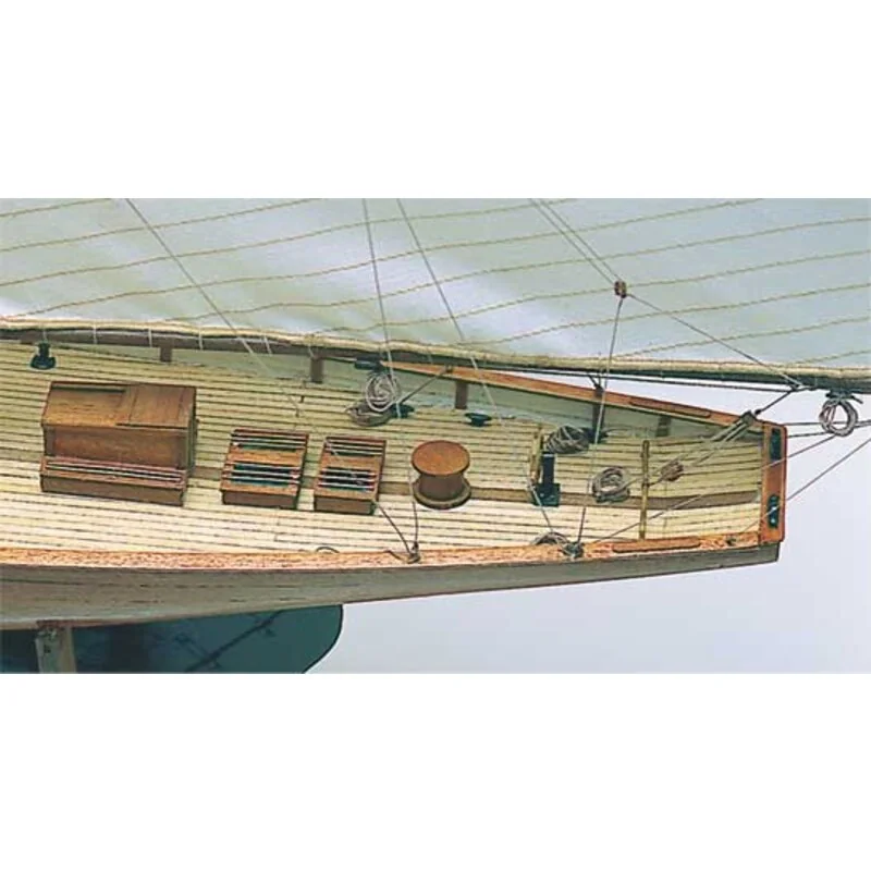 Cette maquette Mantua représente un yacht appartenant à la famille royale anglaise construit en 1749. Elle est décorée de nombreux ornements et les pièces ont été découpées au laser. Elle est à l’échelle 1/47 et ses dimensions sont de 830 x 160 x 610 mm.