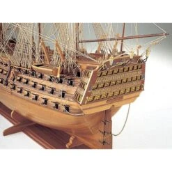 Notre reproduction a respectĂ© scrupuleusement la mâture ainsi que l’emplacement des superstructures du pont principal et des dĂ©tails extĂ©rieurs de la muraille, sur la base des plans originaux britaniques.