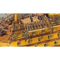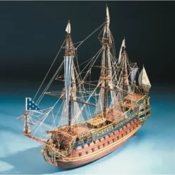 Cette maquette Mantua représente un yacht appartenant à la famille royale anglaise construit en 1749. Elle est décorée de nombreux ornements et les pièces ont été découpées au laser. Elle est à l’échelle 1/47 et ses dimensions sont de 830 x 160 x 610 mm.
