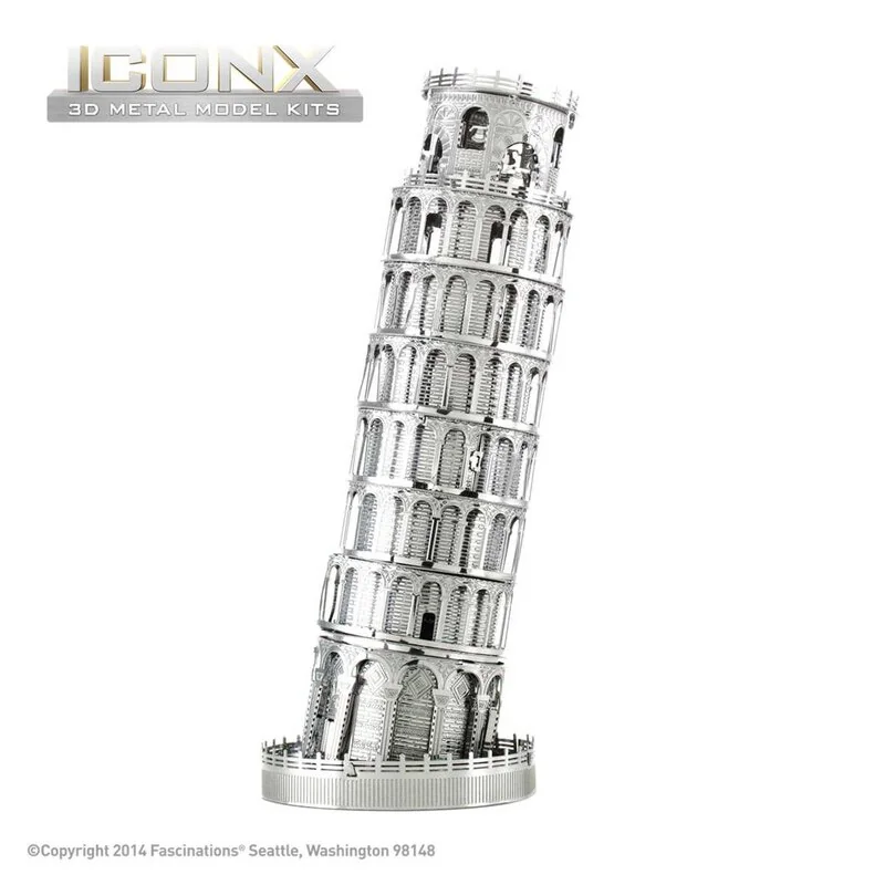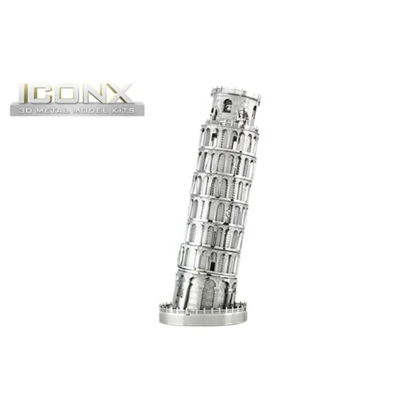MetalEarth: ICONX – TOUR DE PISE 8.89×3.81×3.81cm, maquette 3D en mĂ©tal avec 1 feuille, en boĂ®te 13,5x22x2cm, 14+