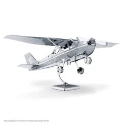 MetalEarth Aviation: CESSNA SKYHAWK 11.4×9.2×2.5cm, maquette 3D en mĂ©tal avec 1 feuille, sur carte 12x17cm, 14+