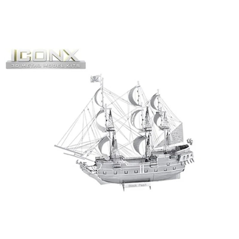 MetalEarth: ICONX – BATEAU PIRATE LA PERLE NOIRE 14.61×4.45×11.43cm, maquette 3D en mĂ©tal avec 2 feuilles, en boĂ®te 13,5x22x2cm, 14+