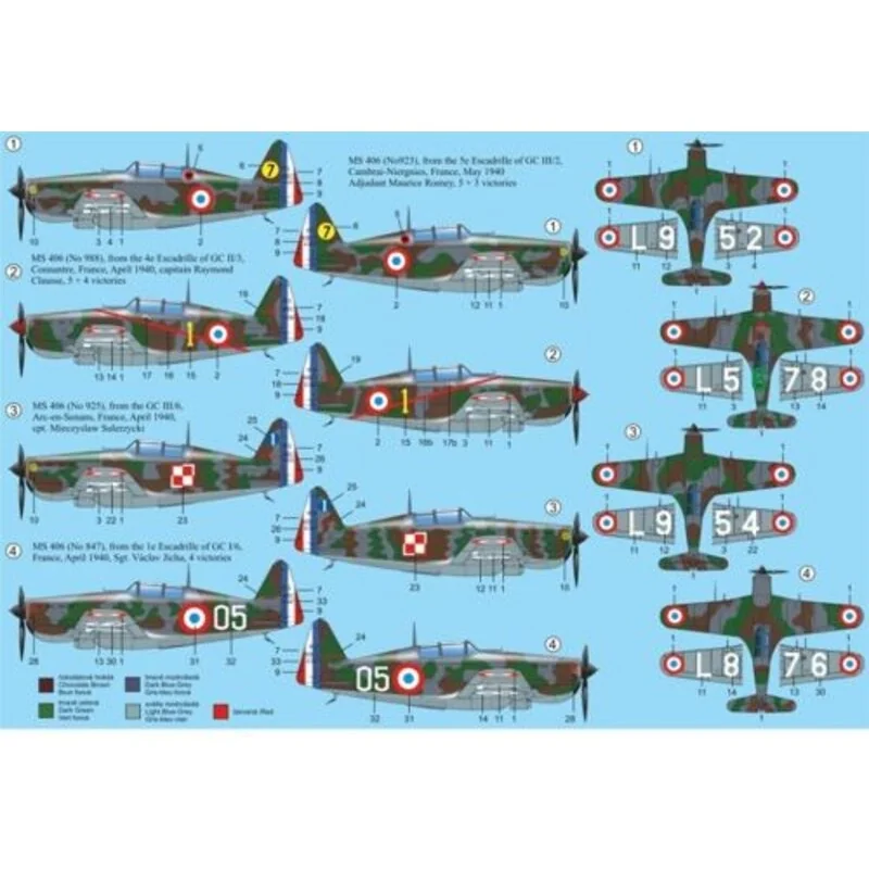Fiche technique Morane-Saulnier MS.406 France 1940 New 2/2012 !!! 4 variantes de décals pour France