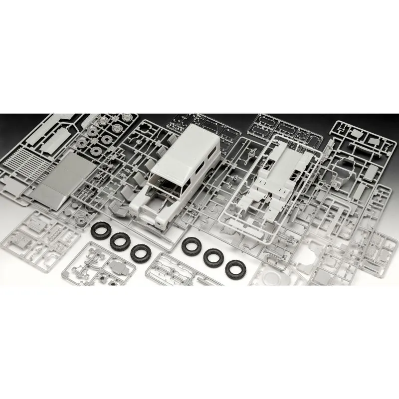 Kit de modèle rĂ©duit facile Ă construire de l’emblĂ©matique vĂ©hicule tout-terrain Land Rover Series III LWB en tant que « Commercial Vehicle ». Échelle 1/24. 174 pièces. 19,5 cm de longueur – 8,6 cm de largeur. Convient Ă partir de 10 ans. Kit de modĂ©lisme du Land Rover Commercial. Le vĂ©hicule utilitaire convenait pour le transport de marchandises peu maniables et aussi, grâce Ă sa surface de chargement protĂ©gĂ©e contre la corrosion, de substances corrosives. – Moteur quatre cylindres en plusieurs parties – Version avec volant Ă droite ou Ă gauche – DĂ©calcomanies avec diffĂ©rents marquages (D, A, NL, B, F, GB, I, CH, IRL)