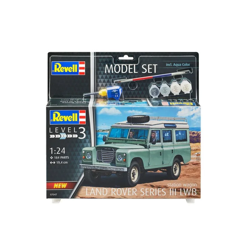 La boîte comprend un pinceau, de la colle et les principales peintures nécessaires pour réaliser la maquette.