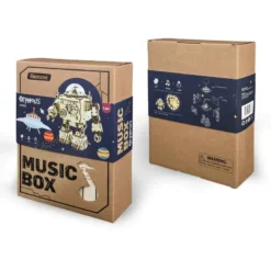 Robotime propose en outre des maquettes en carton de boîte à musique qui fonctionnent non pas avec des piles, mais grâce à un système d’engrenages mécaniques sophistiqués. Ce dernier est déjà prémonté et peut être mis en marche après le montage de la Music Box.